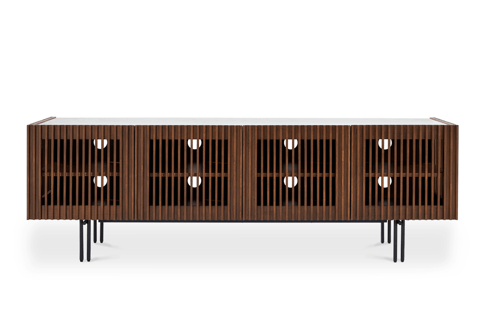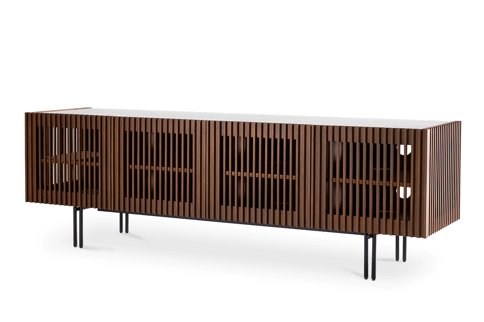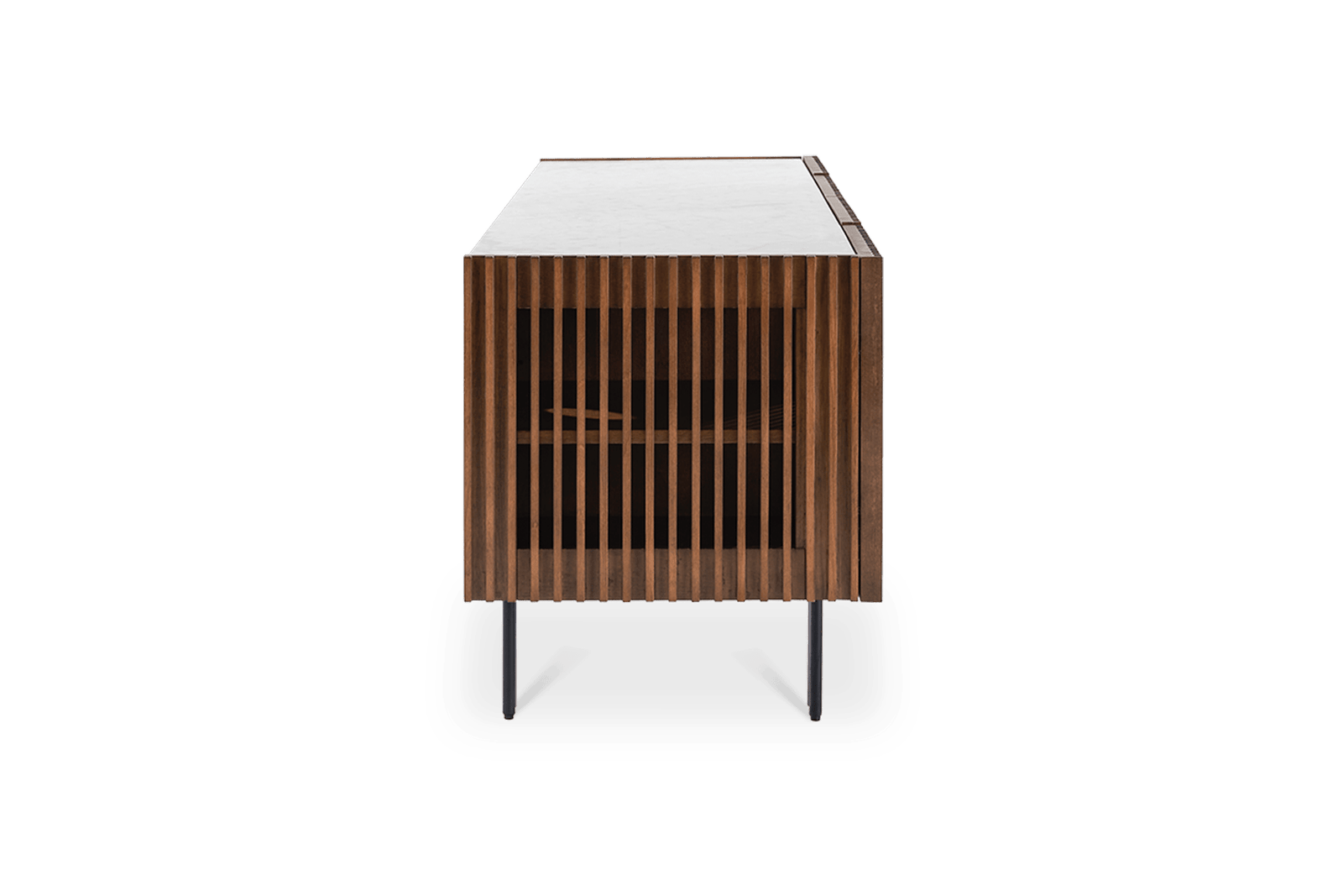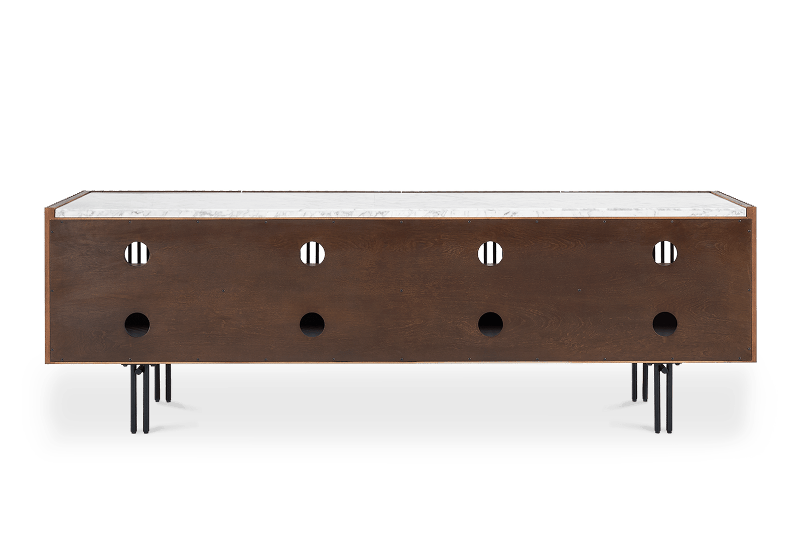 Frame: walnut stain and clear lacquer finish; Legs: black powder coating