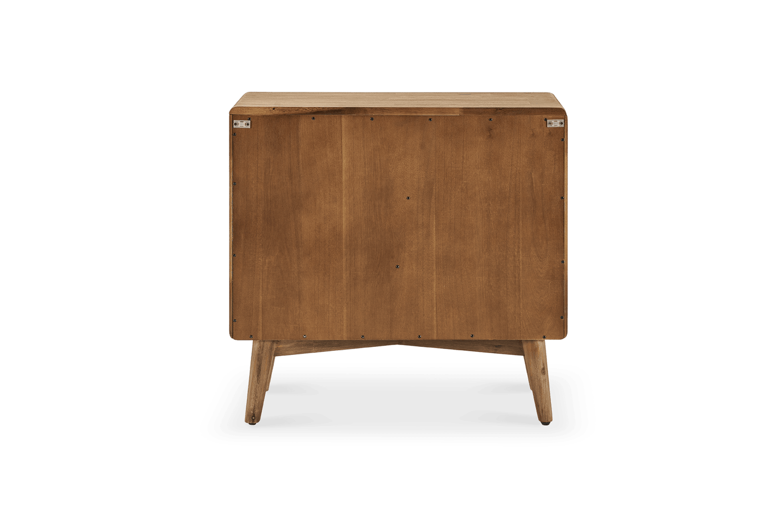 Solid acacia wood frame with engineered wood back and metal handle