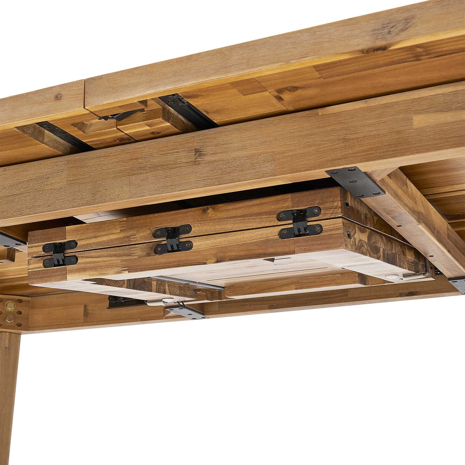 Split table top with butterfly leaf mechanism